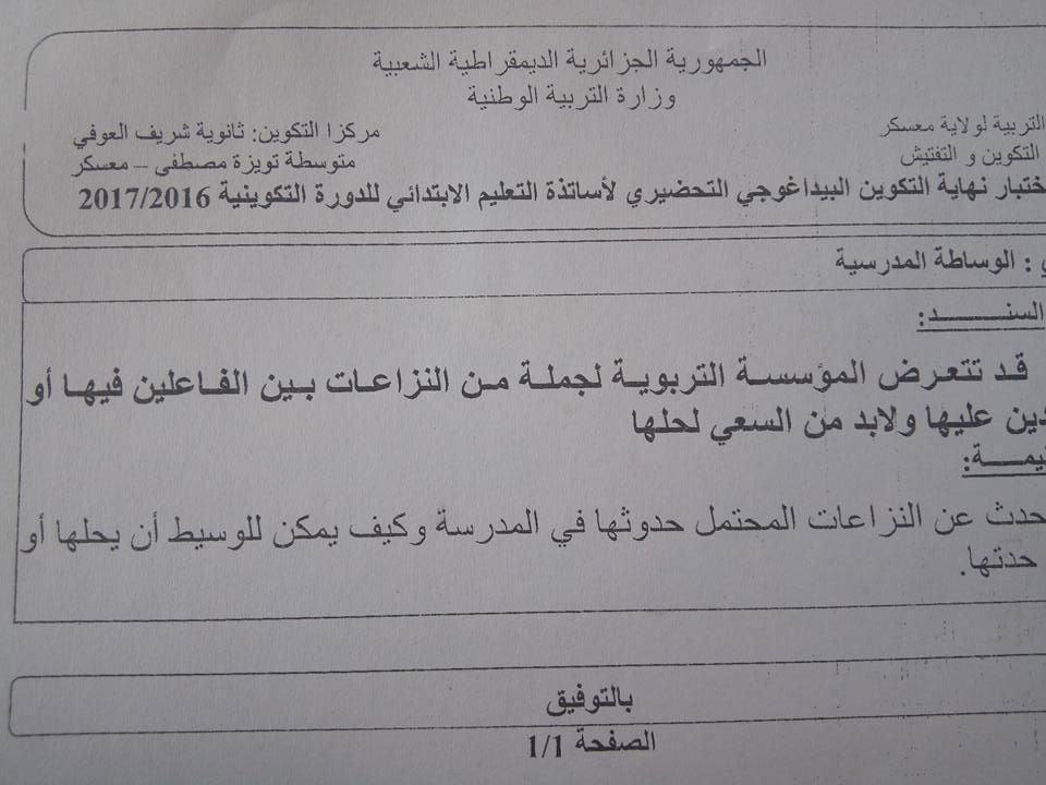تقدم لكم مجموعة اكبر تجمع للاساتذة الجزائريين مجموعة من مواضيع امتحانات نهاية التكوين للاساتذة المتربصين